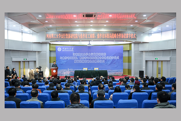 12月18日上午,学校太行发展研究院与焦作市工商联、焦作市环保局战略合作协议签字仪式暨首批兼职研究员聘任仪式在南校区力行楼一楼会议室举行。焦作市委副书记刘涛,市工商联党组书记武晓红,市环保局党组书记、局长张明库,校长杨小林,副校长张锟出席仪式,刘涛、杨小林、张锟分别向太行发展研究院首批聘任的90名特约研究员和兼职研究员代表颁发了聘书。仪式由社科处处长、太行发展研究院副院长程伟主持。