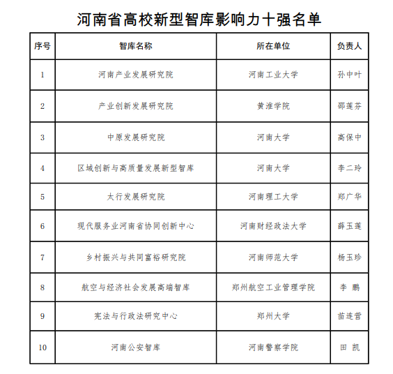 我校太行发展研究院入选河南省高校新型智库影响力十强