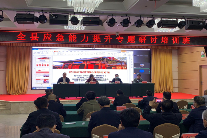 5月13日,淅川县应急能力提升专题研讨培训班暨郑州“7.20”特大暴雨灾害追责问责案例以案促改专题培训班在淅川县楚都饭店五楼会议室举行。河南理工大学应急管理学院副教授、太行发展研究院研究员程书波应邀作《防汛应急管理的任务与方法》专题报告。淅川县委常委、组织部部长王楷楠出席开班仪式。淅川县应急管理局局长鲁峰主持开班仪式。全县各乡镇、县直相关单位负责人参加培训班。 王楷楠代表县委对学校长期以来的支持和帮扶表示感谢,强调参训学员要以此次培训为契机,进一步熟悉防范风险和应急处突的方针政策,掌握应对自然灾害、生产安全事故、公共安全事件的专业知识,切实提高防灾减灾救灾能力,并对参训人员提出三点要求:一要以案为鉴,提高站位,充分认识应急管理能力培训的必要性;二要以案促学,把握重点,切实提高应急管理能力培训的针对性;三要以学促干,真抓实改,切实提高应急管理能力培训的实效性。 程书波以《防汛应急管理的任务与方法》为题作专题报告。他从预防准备、信息报送、监测预警、应急响应、案例分析五个方面,对县、乡镇(街道)、行政村(社区)三个层级,在防汛责任制、现场指挥组织架构与职责、督导检查形式与内容、信息报送类别与要求、监测预警任务与分工、应急预案编制与演练、应急响应启动与机制等环节进行了深入系统地分析。最后,以郑州“7·20”特大暴雨自然灾害为典型案例,从灾情特征、应对教训和重大影响三个方面进行了深刻剖析。报告既有应急管理专业理论阐释,也有大量生动案例,具有很强的理论性、实战性和操作性。 为克服疫情带来不利影响,校地双方及时调整工作思路,创新培训方式,按下线上培训“快捷键”,将“能力提升讲堂”搬到线上进行。结合淅川县“观念能力作风建设年”活动,为全县各乡镇、县直相关单位党员干部“充电赋能”,实现了“疫情防控、能力提升”两不误。